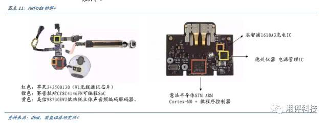 根據(jù)ifixit網(wǎng)站的拆解,AirPods這款耳機(jī)的耳塞部份包含一個(gè)單面電路板(PCB)、一個(gè)雙面PCB,以及一個(gè)小型軟管延伸至Airpods底端。在單面PCB上,我們可以看到W1 SoC、一款Cypress SoC、意法半導(dǎo)體(STMicroelectronics)的低壓降(LDO)穩(wěn)壓器,以及一些其他組件。